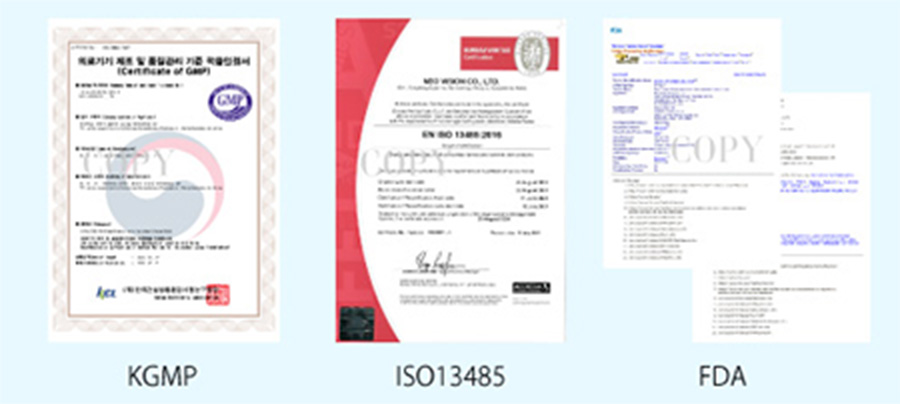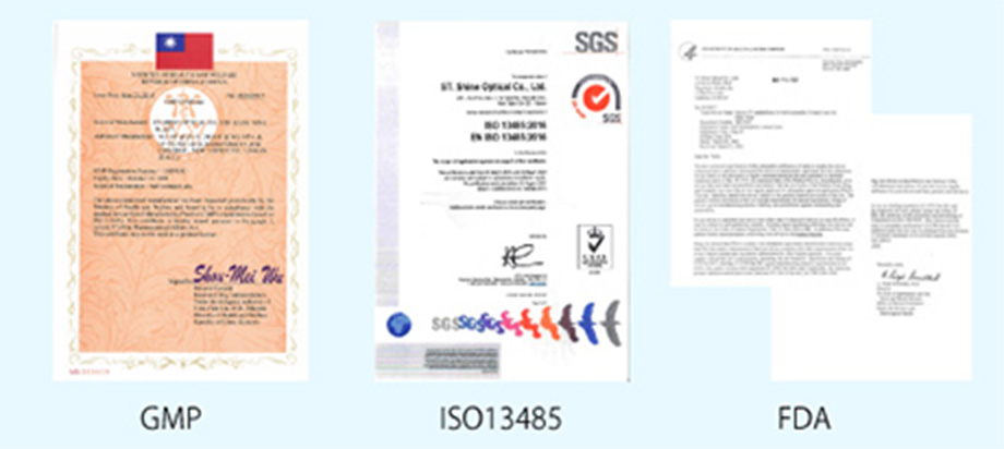 ー優れた品質と技術力ーアイレ製品の製造工場は、国際的に定められた厳しい規格基準に基づいて製造しています。多くのライセンスを取得しており、品質の高いコンタクトレンズの供給を行っています。